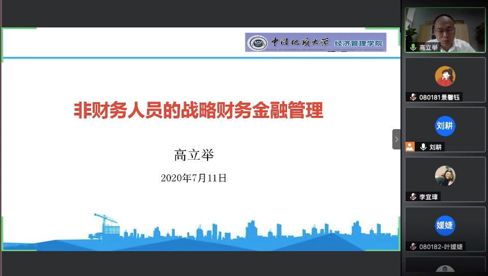 本次讲座在工商管理系刘耕老师的主持下,于2020年7月11日上午8:30在腾讯会议准时召开,黑料网 副院长郭锐教授、工商管理和市场营销专业130余位师生参加,讲座的主题为《非财务人员的战略财务金融管理》。