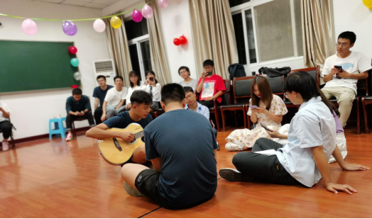 联欢晚会上,首先,班主任付晓灵老师为联欢晚会致辞,传达了她对同学们四年的要求以及期望,让我们感受到了来自班主任的严格与关爱。之后同学们一一庄严宣誓,并上交自己大学四年的学业规划。晚会中,同学们纷纷拿出自己拿手的节目,唱歌、魔术、Rap、钢琴和吉他等节目,都得到了老师与同学的喝彩,也展现出同学们的才华横溢。随后,班主任也给我们演唱了一首《你笑起来真好看》获得了同学们热烈的掌声。