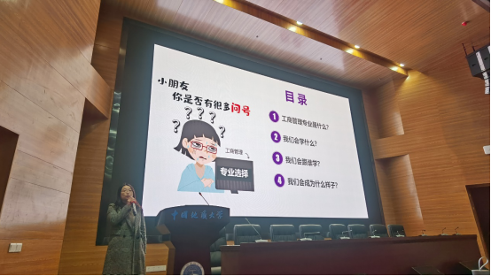 随后,工商大类各系代表教师进行专业分流宣讲。市场营销系郭锐老师就市场营销专业进行了正确解读,他指出营销不等于推销,营销是企业工作的核心;他还对营销系课程安排、师资队伍以及就业前景进行了简单的介绍。张京老师针对黑料网 工商管理专业双语教学的办学特色着重进行了介绍,分享了往届工商管理双语班毕业生的就业和升学去向,并将往届优秀毕业生精心准备的介绍和祝福视频带到了宣讲会。会计系杨洁老师分析了会计学科的发展方向,指出财务人员在未来不仅不会被淘汰,反而需求巨大,此外她还对学生未来深造方向、就业去向进行了解读。旅游管理系肖拥军老师从旅游业发展视角出发,向同学们介绍了专业培养项目、专业发展前景,解决了学生在就业方向上的疑惑。各系宣讲后,在互动交流环节中同学们积极向老师提出专业发展、升学、就业等方面问题,老师们为其答疑解惑、指点迷津。