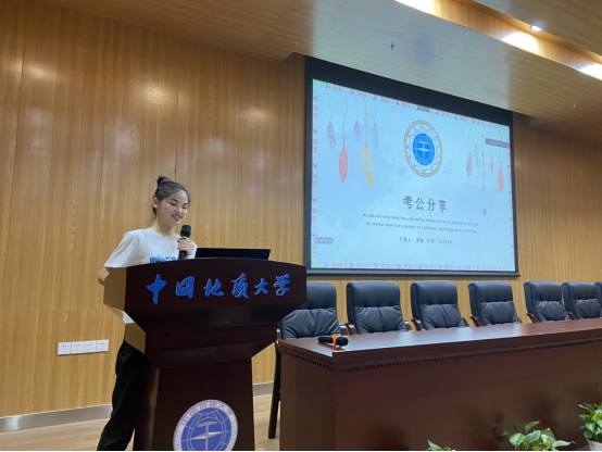 王艺瑾同学结合碧桂园的求职经历分享了作为女生的求职经验和心路历程,她展示了工程管理专业上一届毕业生的就业去向统计表,并特别强调投简历、面试时一定不要害怕失败,要保持自信。成功考取江西宜春发改委公务员岗位的廖璇同学和成功申请到美国Northeastern University offer的杨嘉怡同学分别分享了考公务员和出国留学的经验,为在校生的职业规划提供更多的借鉴经验。
