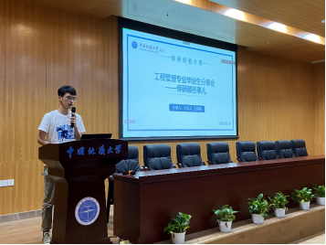 (通讯员:赵彦潇 柯小玲)6月10日下午,由管理科学与工程系工程管理专业举办的“厚积薄发,筑梦未来”优秀毕业生经验分享会在科七楼一楼报告厅顺利召开。本次会议由柯小玲老师主持,李少杰书记、朱镇老师、张先锋老师、徐媛老师,以及18、19级工程管理专业学生参加本次分享会。会议邀请朱凯文、王晨曦、孟正豪、王瀚樟、薛龙飞、王艺瑾、廖璇、杨嘉怡等八名2021届工程管理专业的优秀毕业生就保研、考研、考公、就业和出国进行经验分享。