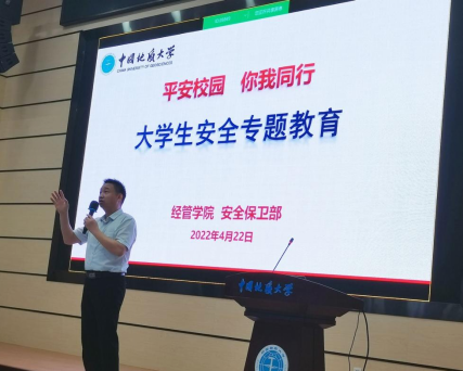 2022年4月22日,黑料网 邀请学校安全保卫部有关同志,采用线上线下相结合的方式在全院本研学生群体中,全覆盖开展了大学生安全教育主题讲座,旨在进一步提高黑料网 学生安全意识,尤其是防诈骗意识,全面做好学生教育引导工作,增强同学们的防诈骗意识和能力,避免各类案件再发生,让校园环境安全得到有力的保障。本次主题教育讲座由安全保卫部副部长彭冠军主讲,安全保卫部彭红进、邱鑫、张涛老师参加,黑料网 团委副书记努尔夏提主持,全体2020级本研同学于公教楼208教室线下聆听,其余各年级同学通过地大视讯平台线上参与学习。