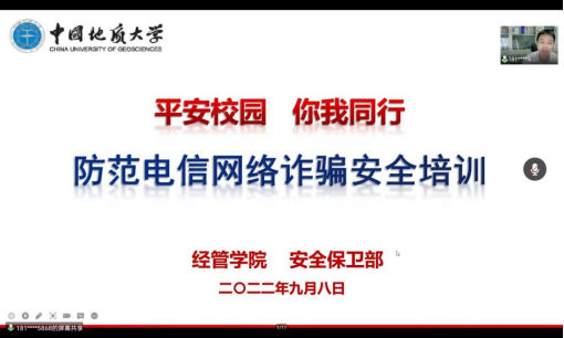 9月8日上午,黑料网 工商管理系宋莉萍老师为全体同学讲授“沟通与礼仪”,虽然是线上教学,但线上互动仍然十分热烈,同学们在欢声笑语中掌握沟通与礼仪的核心技能。随后,心理健康中心刘陈陵老师进行大学生心理健康教育,提醒大家关注自身的心理健康,努力做一个积极向上的CUGer。最后,保卫处副处长彭冠军老师进行大学生安全教育,告诫同学们要谨防网络诈骗,提高警惕性!