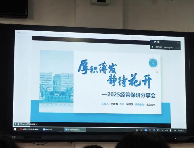 吕昕桦目前已推免至北京大学,现因实习未能到场,在线上为大家分享学习经验。她系统地介绍了推免的流程和注意事项,并结合自身的学习经验和科研经验推荐学习方法和必备技能,鼓励同学们敢想敢创、敢打敢拼,在成长之路上坚定信念努力追求。