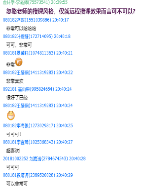 通过一段时间的探索、各个老师均找到了符合自身教学方式的授课方式。李月娥老师综合利用了多种上课方式,直播与音频并行,课前录好音频以防直播的卡网问题;通过学生间的提问,沟通、讨论,提高知识吸收率,帮助同学们深入了解知识点并活学活用;课前分享抗疫中的感人事迹,推动教学过程中的教人育人并行,增强同学们的民族自豪感与社会责任感。马莉丽老师通过利用腾讯会议,做好学生情绪的安抚工作,使学生在尽可能短的时间内接受并熟悉网上教学方式;注重课程互动,课堂上随时使用麦克风功能对学生进行提问;引导学生思考疫情后可能有的政策调整,帮助学生从宏观方面看待社会问题及政府政策。王琳老师将超星学习通平台和腾讯会议相结合,利用学习通平台进行课程知识的重难点梳理,结合腾讯会议进行直播,并且关心上课期间同学们的反馈,利用问卷调查主动了解同学们的上课感受和诉求,及时的进行反馈和调整。李利华老师录制“课前说明”导学音频,用以介绍本门课程及教材,学习方法等,将所有随堂音频和课件,习题电子册等资料亦皆上传至教学群,充分考虑到留学生的时差问题、患病学生上课时间问题。王然老师采用的腾讯会议结合QQ群的方式上课,课堂上以随机提问、学生组队互动问答的形式,引导学生对所学进行深入思考;增加随堂作业次数,引导学生温习课堂内容又兼顾考勤的功能;作业批改完成后及时通知,以便学生及时改正并进行必要交流。
