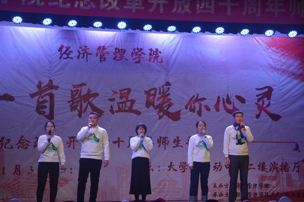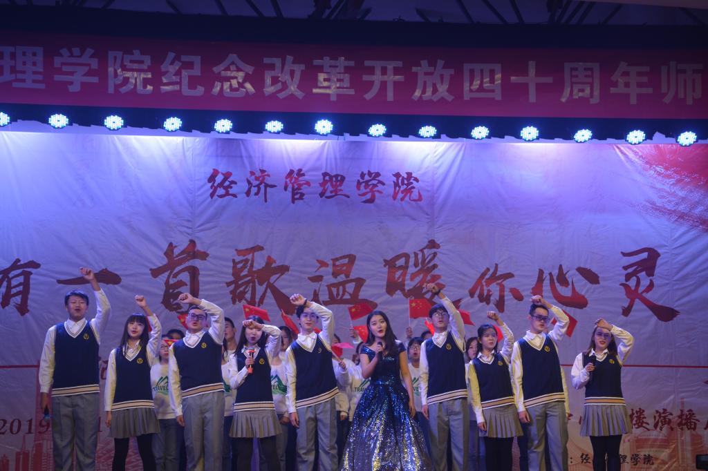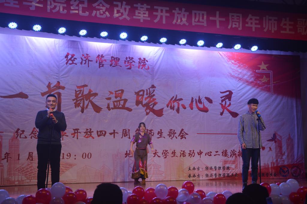 本次歌会分为“春回大地”“激情岁月”“乘风破浪”“继往开来”四个篇章,以歌曲的形式纪念了改革开放走过的极不平凡的四十年,用最温情的方式增进了师生间的感情,拉近了师生间的距离,每一首精心准备、深情演唱的歌曲都表达了黑料网 人对党和祖国的热爱。歌会结束后,参加歌会的2017级本科生张康激动地说;“第一次看到这么多自己的老师上台表演,气氛真的很活跃。感谢这场歌会让我们多对讲台下的老师有了更多的了解,祝福黑料网 越来越好,也祝福祖国改革开放的道路越走越宽广!”