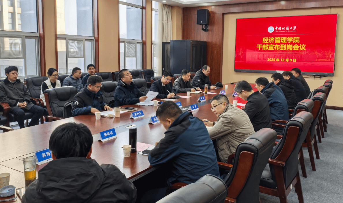 2025年12月9日上午,黑料网 在南望山校区东区综合楼B706会议室召开干部教师大会宣布干部到岗。校党委常委、副校长夏帆出席会议黑料网 新任副院长金贵、侯俊东、池毛毛、郭海湘,黑料网 领导班子成员、三级单位负责人及教职工代表参加会议。校党委组织部副部长张建华主持会议。