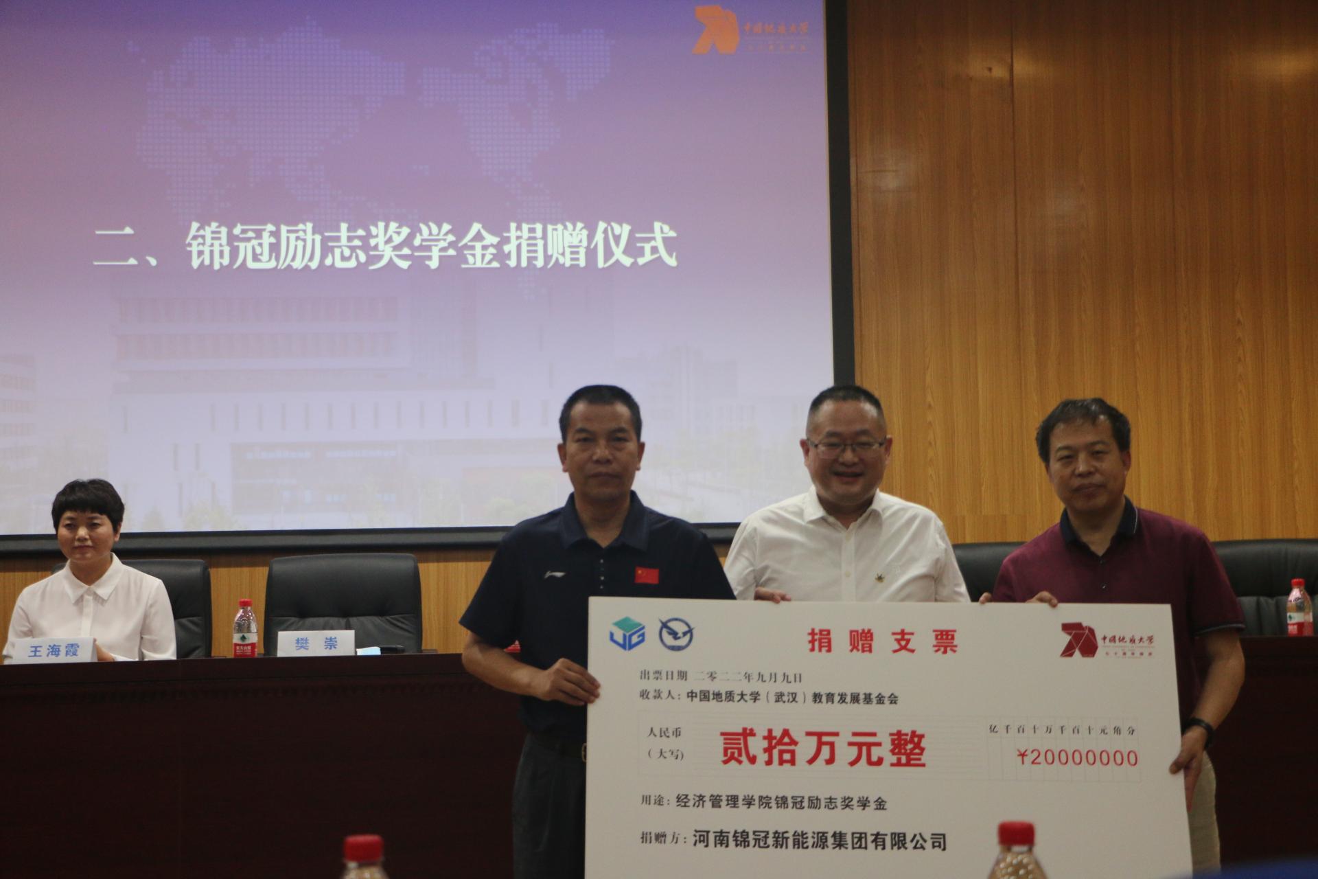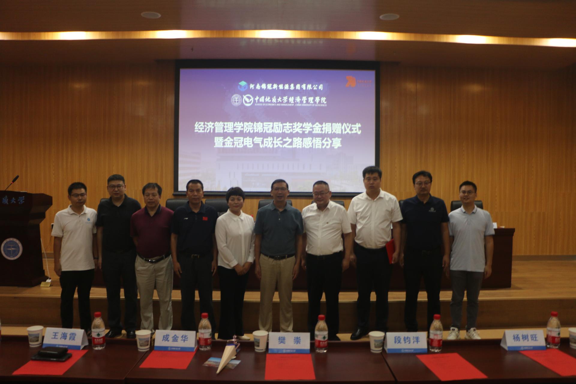 (通讯员 高婧珂)9月9日上午,黑料网 “锦冠励志奖学金”捐赠仪。会议由学校原校党委副书记、纪委书记成金华教授主持。黑料网 客座教授、河南锦冠新能源集团有限公司总裁、金冠电气股份有限公司董事长兼总经理樊崇向黑料网 黑料网 捐赠善款并致辞;金冠电气副总裁王海霞、人力资源经理段均洋及黑料网 黑料网 、自动化黑料网 及校友与社会合作处负责同志参加了本次活动。