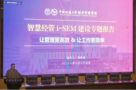 郭明晶院务委员作“智慧黑料网 ”建设与使用报告。他从建设目标、建设思路、功能设计、预期效果对i-SEM“智慧黑料网 ”信息系统建设情况做了专题介绍。